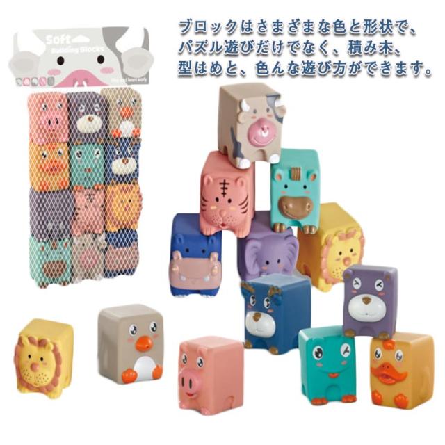 音の出るおもちゃ ブロック 積み木 子供 知育玩具 お風呂遊び 数字 動物 音が鳴る 柔らかい 寅年 虎 牛 赤ちゃん 男の子 女の子 誕生日 出産祝い 子供の日 新年 クリスマス プレゼント ベビー向けおもちゃ ソフトブロック はじめての積み木 12pcs