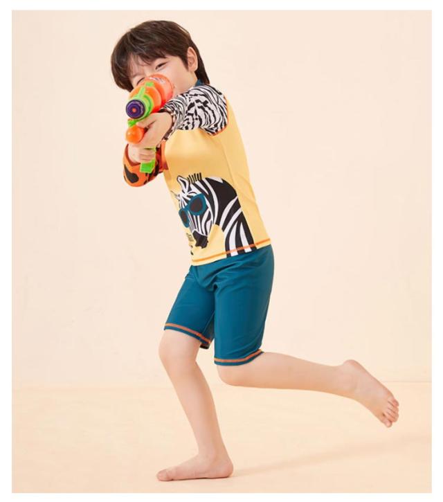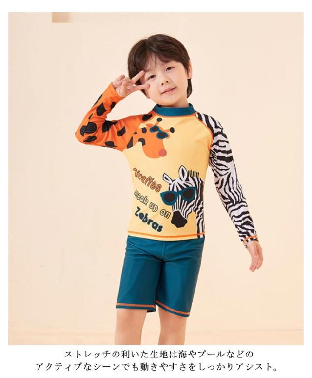キッズ 水着 セパレート 男の子 長袖 ラッシュTシャツ ショートパンツ 上下2点セット ラッシュガード アニマル柄 80 90 100 110 120 130 cm 小学生 ジュニア 男児 水陸両用 水着 速乾 吸水 ストレッチ プール 海 川 リゾート 水遊び