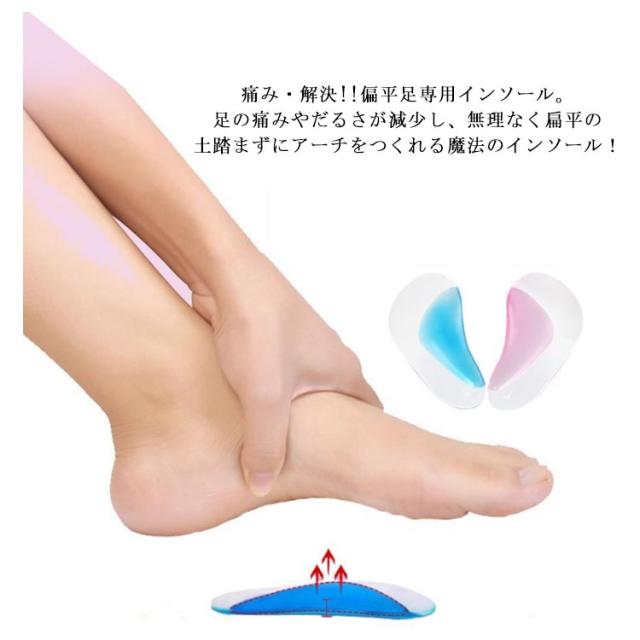 偏平足 専用 シリコン インソール ジェル 土踏まず サポート 衝撃吸収 足裏 足底 痛み解消 男女兼用
