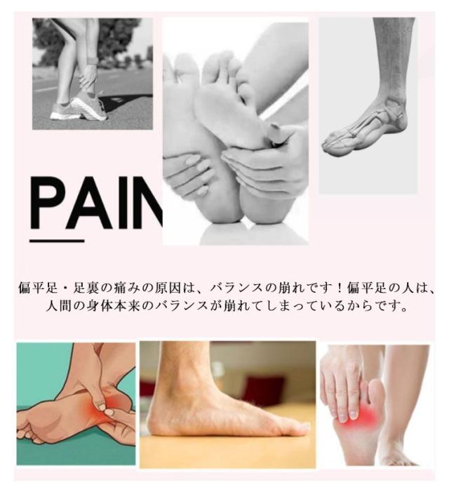 | ?【偏平足の悩み解決!】痛み・解決!!偏平足専用インソール。足の痛みやだるさが減少し、無理なく扁平の土踏まずにアーチをつくれる魔法のインソール!男女兼用になります。偏平足・足裏の痛みの原因は、バランスの崩れです!偏平足の人は、人間の身体本来のバランスが崩れてしまっているからです。足全体を支えらていないので、当然かかる負担は大きくなり、その分疲れやすくなったり、痛みを感じることが多くなりがちです。最悪の場合、歩行困難に!?これは現実に起こりうる恐ろしい事態です。 ?【体重を正しく支えるサポート】弾力のあるシリコン素材を使用しており、あなたの土踏まずにピッタリとフィットし、体重を正しく支える手助けをします。足裏・足底の痛みを解決!快適歩行。衝撃を吸収。素材の程よい固さが効果的に衝撃を分散し、これにより疲れや痛みのさらなる軽減が期待できます。偏平足の方は、ぜひ一度お使いください。 ?【安心素材×衛生的】素材は安心のシリコン素材を使用しております。当製品は、弾力のあるシリコン素材を使用しています。あなたの土踏まずにピッタリとフィット。体重を正しく支える手助けをするので、一日中靴を履き続けても、激しいスポーツをしても、余計な疲労を感じず快適な履き心地を満喫していただけます。ホコリが付着したり汚れてしまった場合は水洗いが可能で衛生的。粘着力が弱ってきた場合は両面テープで靴に張り付けてあげるとズレも起こりにくく快適にご使用いただけます。セロハンをはがして靴に貼り付けるタイプなので位置調整が簡単! | |