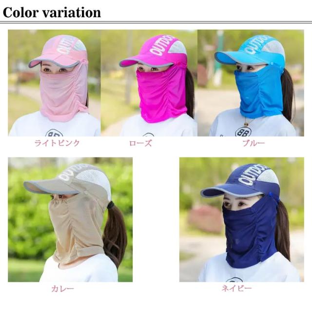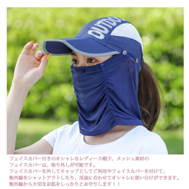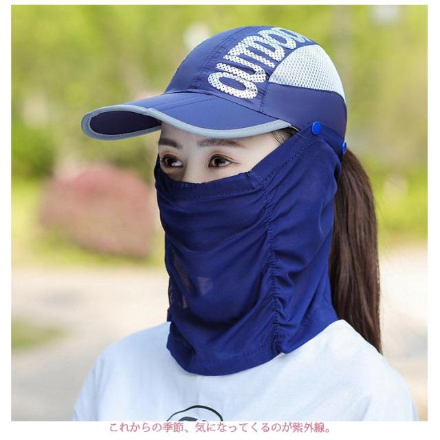| 夏に向けて日焼け対策、UVケアとしても欠かせない帽子。 これからの季節、気になってくるのが紫外線。 1つあれば便利4WAYで使える!! 各パーツの着脱で被り方を変えられる優れものこれ1つであらゆるシーンの日除けに対応◎ 春夏トレンドのスポーティーなコーディネートにピッタリの日焼け予防アイテムです♪ コンパクトに折りたためて携帯にも非常に便利です フェイスカバー付きのオシャレなレディース帽子,メッシュ素材のフェイスカバーは、取り外しが可能です。 フェイスカバーを外してキャップとしてご利用やフェイスカバーを付けて、紫外線をシャットアウトしたり、用途に合わせてオシャレに使い分けができます。 紫外線から大切なお肌をしっかりとお守りします!! おすすめコーデとしては、浅めに被ることで、小顔効果が狙えます! シルエットがきれいなデザインですので、キュートな女性らしさをキープできます ゴルフのプレー中やスポーツ、アウトドアなど一番日光が直接当たるのは顔の頬!! 2時間プレーするだけで、翌日シミになるほどの強さです。あなたの美肌を守るため、これからの季節プール 海水浴 キャンプ BBQ スポーツ リゾートバカンス旅行などのお出かけ、ゴルフ、テニス、登山、ランニング、サイクリング、キャンプ、釣り、トレッキング、アウトドア全般にも活躍してくれます | |