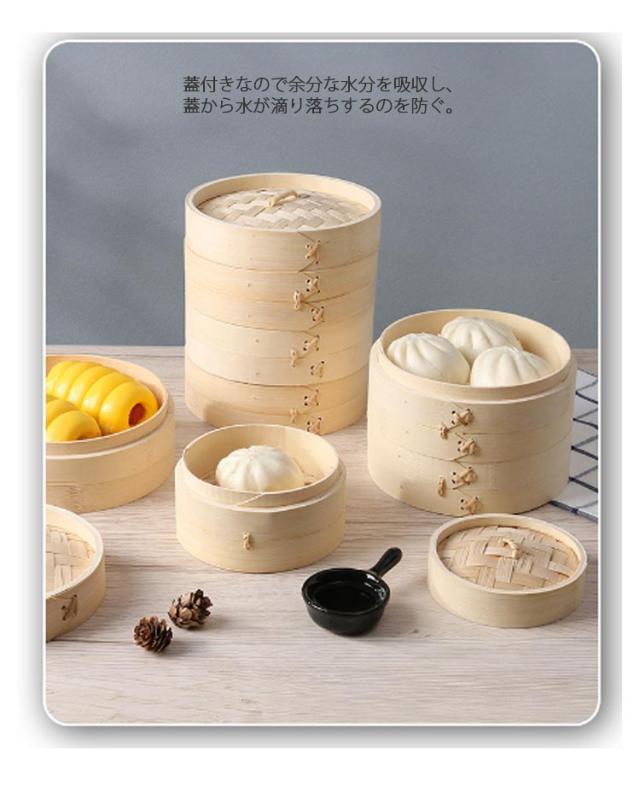 | ご家庭で手軽に本格的な蒸し料理が出来るせいろの3段セットです。 天然素材が環境に優しく、耐久性があり、蒸し料理が美味しく仕上がる。 シュウマイ・中華まん・ギョウザ・温野菜・その他蒸し料理に最適です。 蓋付きなので余分な水分を吸収し、蓋から水が滴り落ちするのを防ぐ。 ご家庭のお鍋やフライパンなどの上のセットして蒸し料理が手軽に楽しめます | |