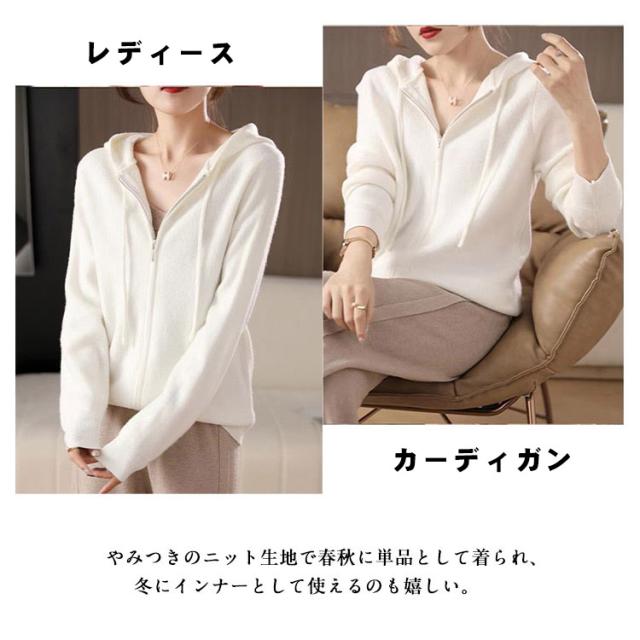 ダブルファスナー ニットパーカー 送料無料 レディース フード付き パーカー ニット ダブルジッパー カーディガン ジップアップ トップス レイヤード 両開き 春 秋