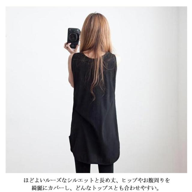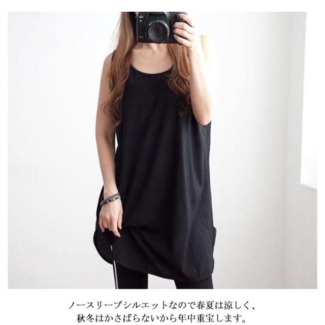 レイヤード タンクトップ レディース ノースリーブ チュニック インナー おしゃれ カジュアル 夏 重ね着 袖なし ラウンド チュニックインナー 丸裾 カットソー Tシャツ 無地 シンプル ブラック ホワイト ギフト プレゼント 送料無料