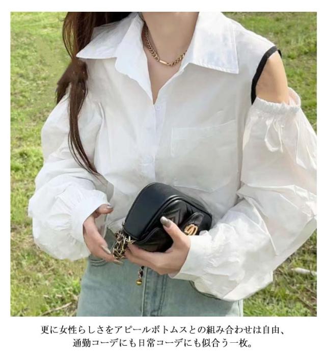 | 肩出し×バルーンスリーブ、おしゃれなシャツ。 柔らかな素材が通気性が抜群、フェミニンな雰囲気と滑らかな風合いで魅せるシャツブラウス。 更に女性らしさをアピールボトムスとの組み合わせは自由、通勤コーデにも日常コーデにも似合う一枚。 快適とファッショナブルなスタイル、様々なシーンで活躍できるアイテムです。 | |
