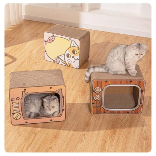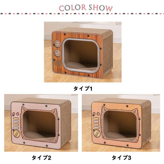 つめとぎ 猫 爪とぎ ねこ 爪みがき キャットハウス ペットハウス 猫の家 おもちゃ ベッド ダンボール ネコトンネル 飛び出す つめとぎ 段ボール テレビ形 置き型
