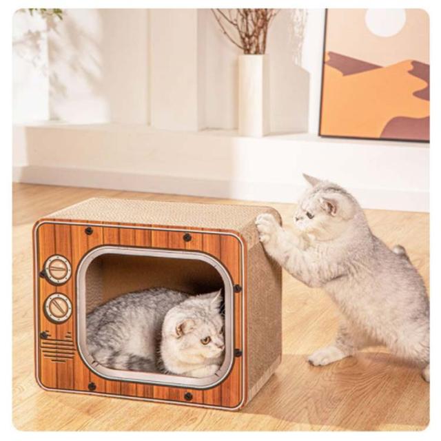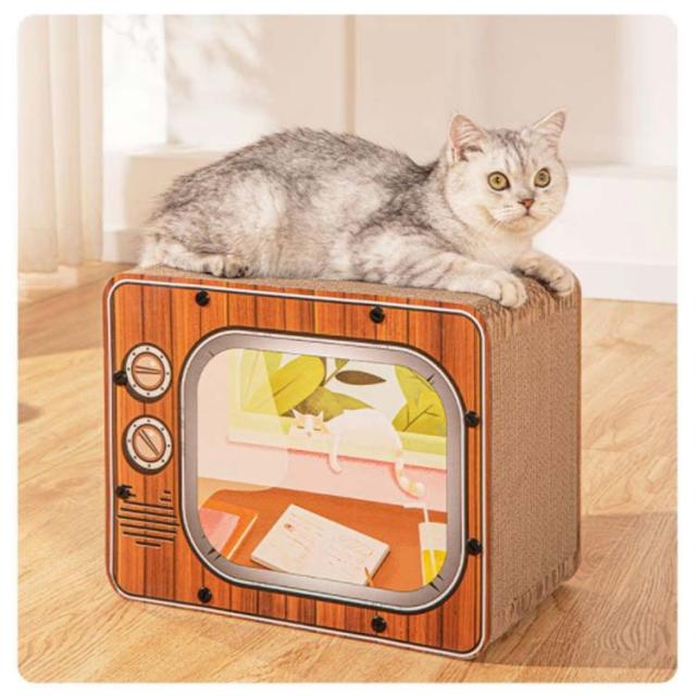 | 【ユニークなデザイン】 レトロなテレビのようなスタイルが人気の、段ボール製のねこ用つめとぎです。型崩れしにくい素材とかわいい見た目が◎ 【環境に優しい】 古紙を再利用した環境に優しい素材。 【バリバリ爪とぎ!】 猫ちゃんも気持ちいい!バリバリ爪とぎできるから家具の引っかき防止にも。 | |