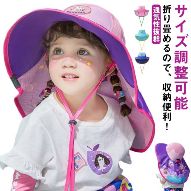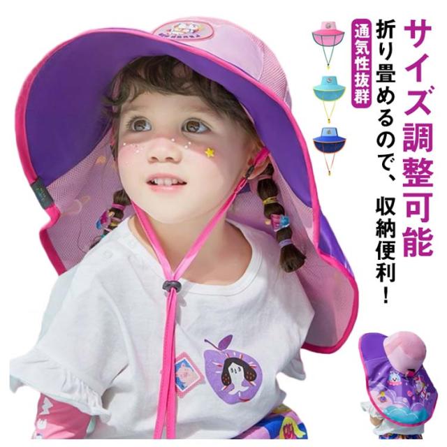 完全遮光 UV 日焼け 涼しい UVカット首ガード 子供用 可愛い日除け帽 子供日よけ帽子 紫外線 首カバー あご紐付き 両サイドメッシュ 春夏 アウトドア 可愛い 軽量入園 登山 保育園 運動会 持ち運び 便利 自転車 キッズ 男の子 女の子 幼稚園用 小学生用