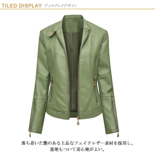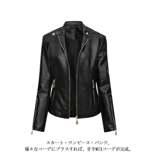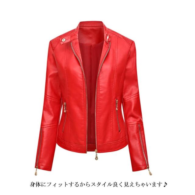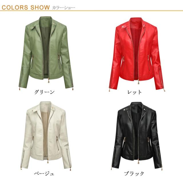 全4色×6サイズ!フェイクレザージャケット レディース 合皮ジャケット スタンドカラー ライダースジャケット 立ち襟ジャケット PU合皮 フェイクレザー アウター ジャケット ブルゾン 春 秋 冬 おしゃれ 大きサイズ 送料無料