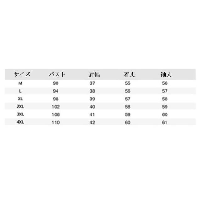 | サイズ | M L XL 2XL 3XL 4XL |