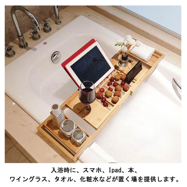バスタブトレー テーブル 浴室 竹製 収納ラック バスタブラック 小物置き スマホ置き バステーブル お風呂用 バスグッズ 伸縮式 半身浴 バスラック お洒落 ナチュラル 送料無料