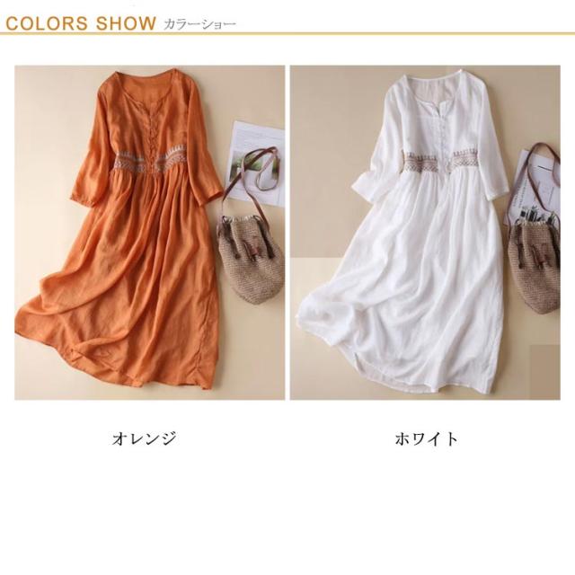 綿100% エスニック柄刺繍ワンピース ロングワンピース 送料無料 コットン 刺繍 ワンピース マキシワンピース ゆったり 可愛い 春 夏 エスニック 民族風 ナチュラル 体型カバー おしゃれ 女性