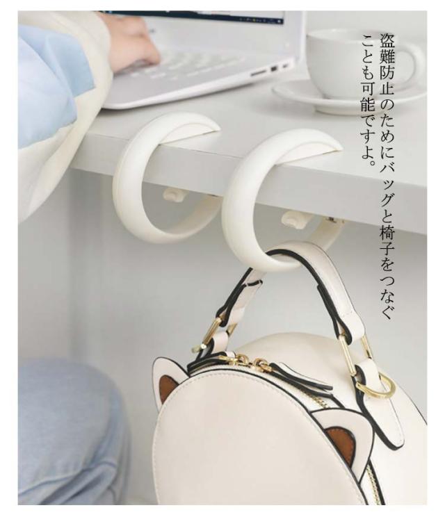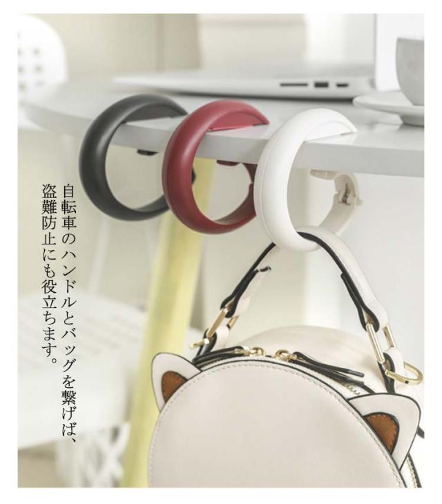 | ・楕円形型のかわいいデザインが魅力のバックフック ・テーブルに引っ掛けて荷物をかけることができるおしゃれなバッグハンガーで、自宅での使用はもちろん、カフェやレストランでの使用にもおすすめです。 ・テーブルに接する部分には滑り止めが付いており、重い荷物も安心して掛けられます。 ・自転車のハンドルとバッグを繋げば、盗難防止にも役立ちます。 ・盗難防止のためにバッグと椅子をつなぐことも可能ですよ。 ・他にも、ベビーカーに付けてフック代わりにしたりと、様々な使い方ができます。 ・使わないときはバッグの持ち手にかけておけるので、カバンの中でかさばりません。 | |