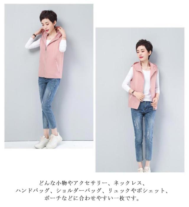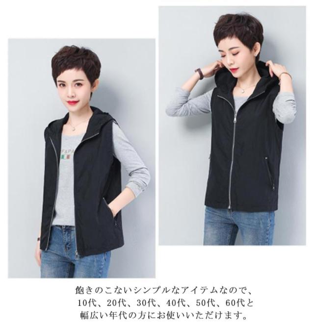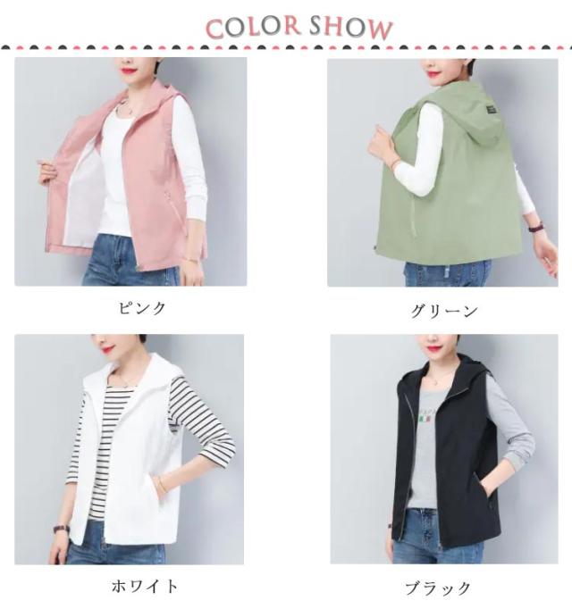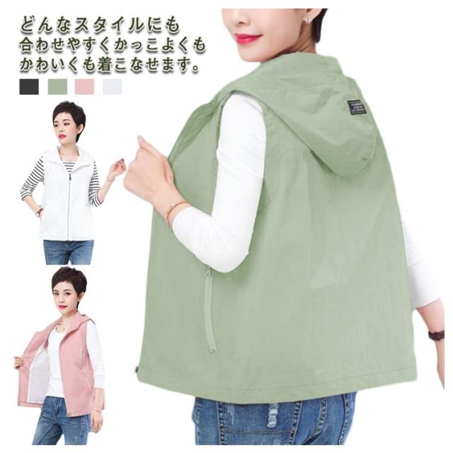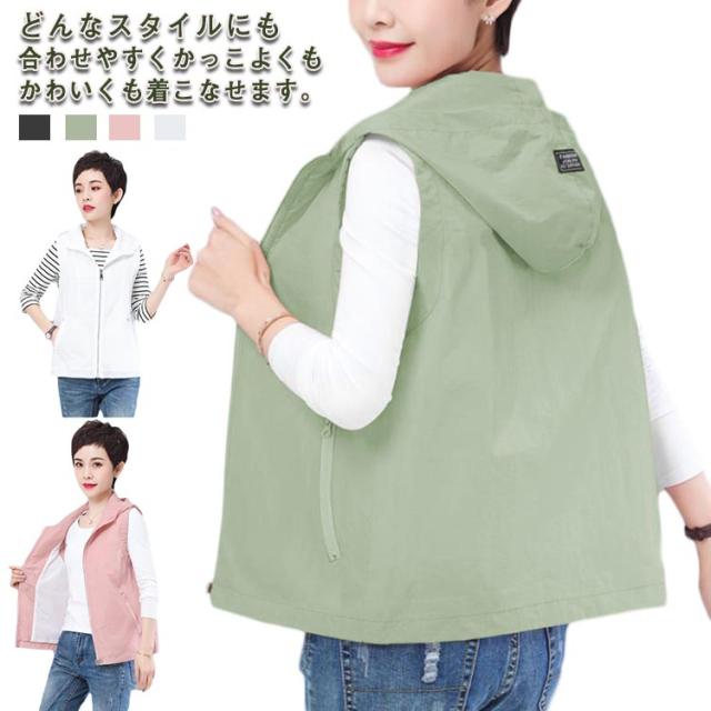 ベスト レディース 春夏 パーカー トップス フード付き アウター 羽織り ノースリーブ パーカ ジップアップ 重ね着 レイヤード お出かけ 通勤 通学 ゆったり 薄手 無地 ホワイト ピンク グリーン ブラック 20代 30代 40代 送料無料