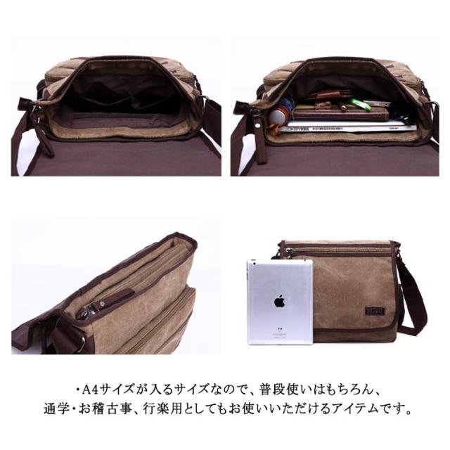 ショルダーバッグ メンズ 斜めがけ 帆布バッグ メッセンジャーバッグ キャンバス A4サイズ キャンバスバッグ 軽量 カジュアル 通学 通勤 旅行 父の日 父親 彼氏 誕生日 クリスマス 実用的 ギフト プレゼント 全4色