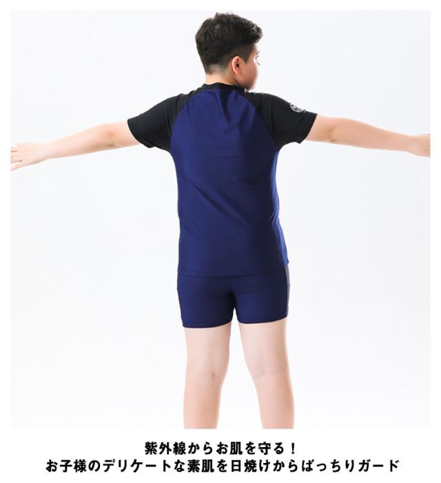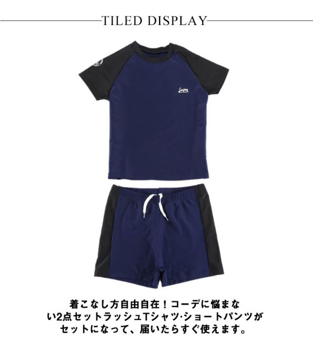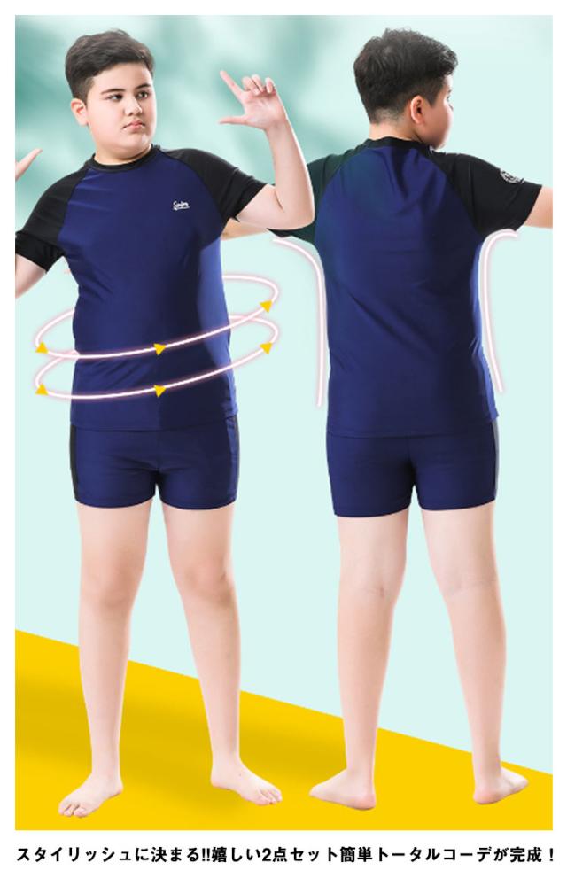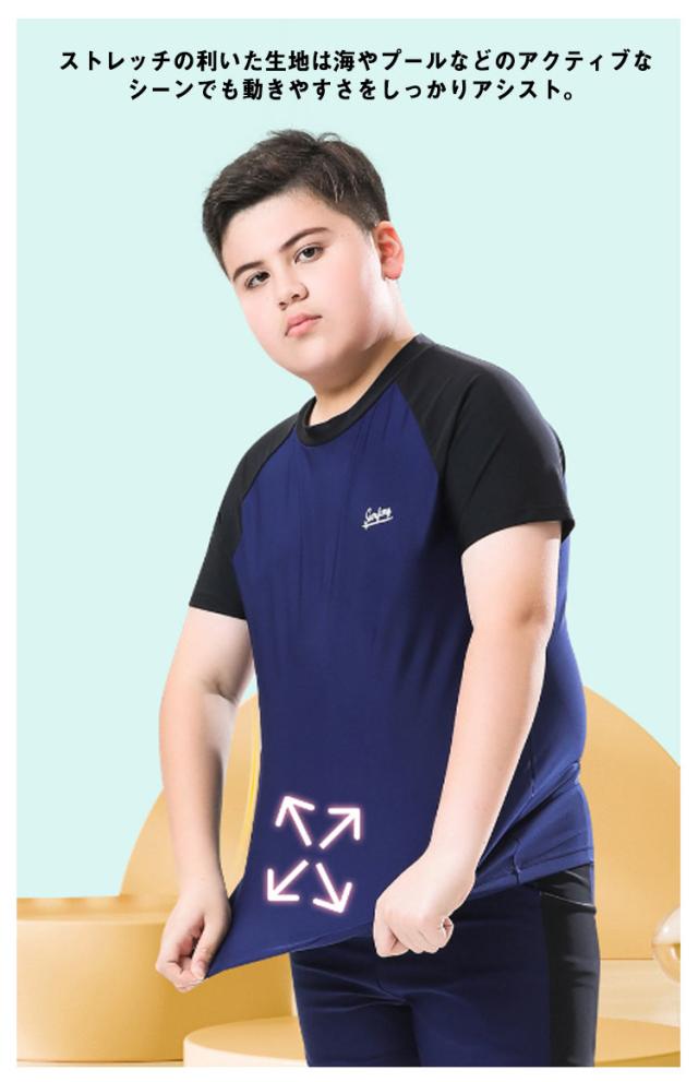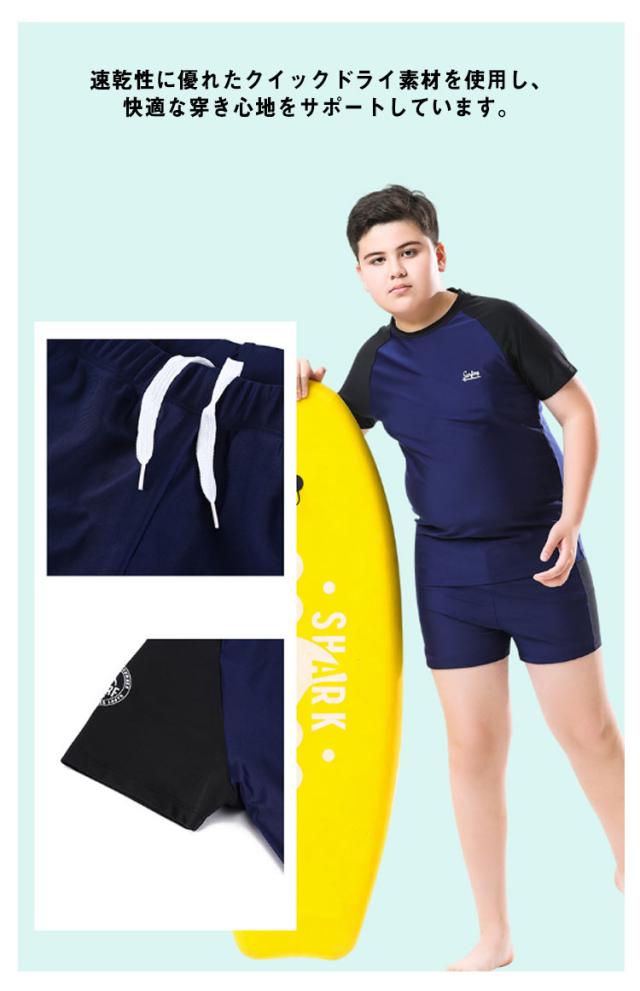 キッズ 水着 男子 セパレート 上下2点セット 半袖 ラッシュTシャツ ショートパンツ ラッシュガード 配色 ストレッチ 超 大きいサイズ 140 150 160 170 180 cm 中学生 高校生 メンズ 大人 速乾 水陸両用 水着 プール 海 川 リゾート 水遊び