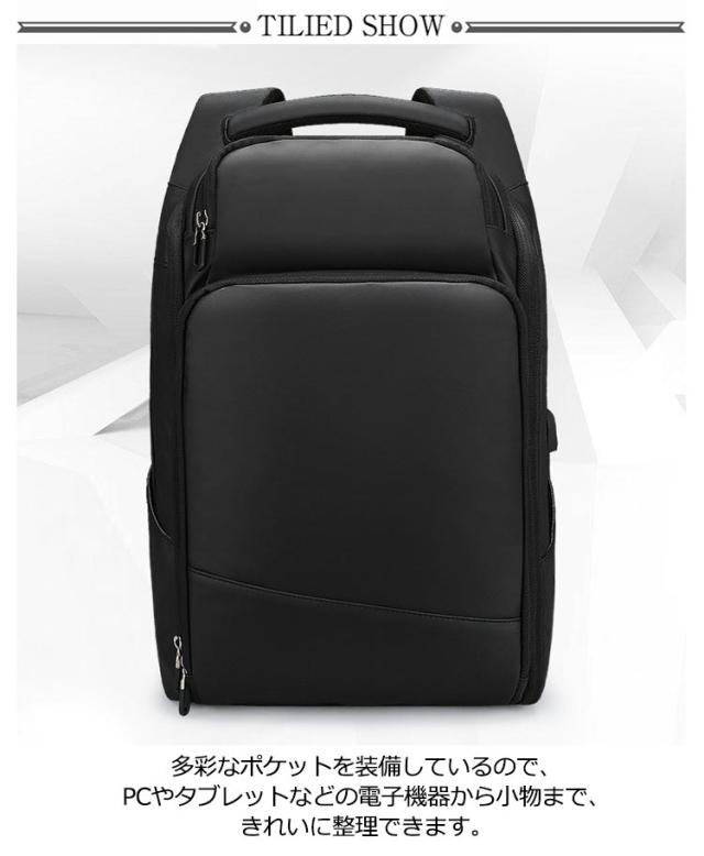 リュック メンズ ビジネスリュック リュックサック スクエアリュック 大容量 PCリュック 撥水加工 15.6インチPC収納可能 USB充電ポート 型崩れ防止 ダブルファスナー 背面ポケット 選べる2タイプの持ち手 通勤 通学 出張