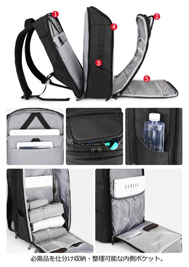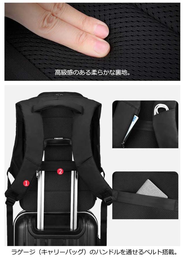 | ・現代のビジネス向けに設計されたデイリーバックパック ・多彩なポケットを装備しているので、PCやタブレットなどの電子機器から小物まで、きれいに整理できます。 ・必需品を仕分け収納・整理可能な内側ポケット ・高級感のある柔らかな裏地 ・バックパネルはパッド付きで通気性のあるメッシュ素材を使用 ・またクッション入りのショルダーストラップも人間工学に基づいたデザイン設計で、多くの荷物を入れても負荷を感じ難い仕様になっています。 ・ラゲージ(キャリーバッグ)のハンドルを通せるベルト搭載 | |