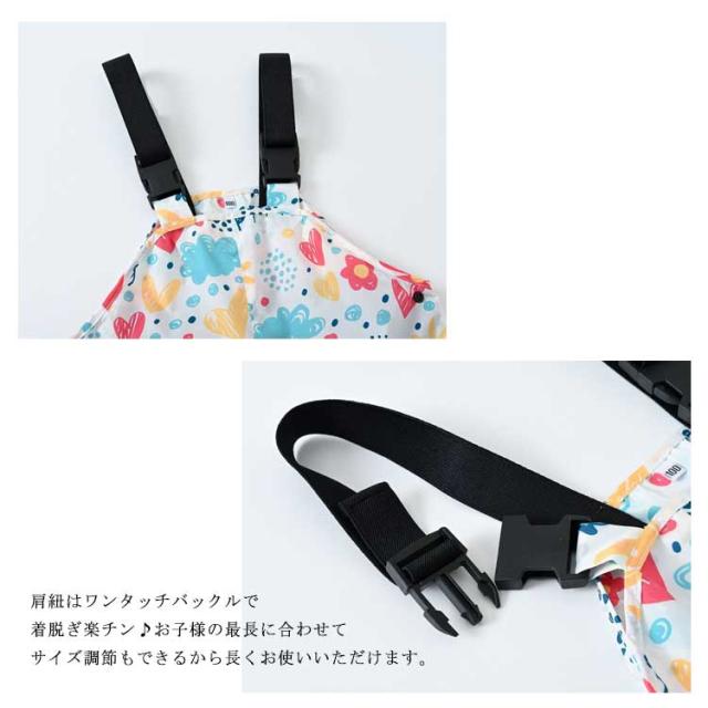 | 100-140cm!実用的な・見た目もかわいいプレイウェアが登場! 肩紐はワンタッチバックルで着脱ぎ楽チン♪お子様の最長に合わせてサイズ調節もできるから長くお使いいただけます。 水を弾きやすく、汚れも付きにくい防水・撥水加工生地を採用し、砂場遊び、泥遊び、水遊びなど時、お洋服を砂・土・水滴から守ります。 袖なしのオールインワンデザインなので雨の日にはレインコートやポンチョと合わせて着用すると、雨の日の通学・通園も安心。 裏側は通気性・吸湿性抜群の綿裏地付きで、オールシーズン快適な着心地◎ さらに反射テープが施され、視認性を強化♪薄暗い雨の日や夜道でも車のライトに反射して光るからパパもママも安心。 カラバリエーションも豊富!お子様が大好きな可愛い柄を全18種類用意しています。 外遊び、砂遊び、泥遊び、手作り、砂浜、海水浴場、公園、食事、スライムや粘土遊びなど、様々な場合で大活躍!梅雨が多い春やお出かけ多い夏にはおすすめです。 | |