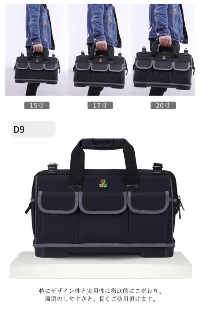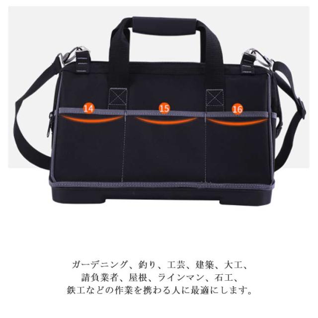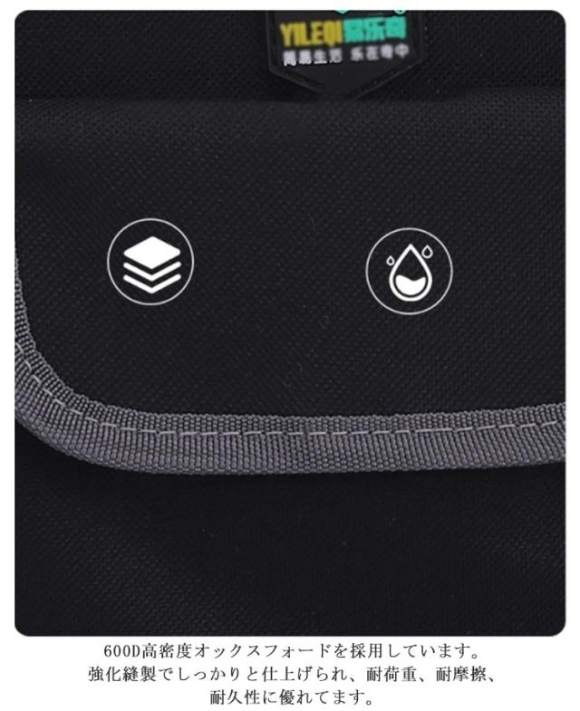 | 【大容量】全面プロ仕様、多機能16ポケット配置しております。小型工具から電動工具まで収納可能です。 【耐摩耗抜群】600D高密度オックスフォードを採用しています。強化縫製でしっかりと仕上げられ、耐荷重、耐摩擦、耐久性に優れてます。 【足置き台付き 】 ツールバッグを支える役割だけでなく、地面と2センチの隙間を作るので、劣悪な工場現場との直接接触を避けることも出来ます。 【多用途】工具入れベルトは様々な道具や工具の収納、携帯に、仕切りがついており大変便利です。ガーデニング、釣り、工芸、建築、大工、請負業者、屋根、ラインマン、石工、鉄工などの作業を携わる人に最適にします。日常生活のDIY活動だけでなく、自動車修理、木工および専門な修理活動も最適です。 【強化持ち手】持ち手は重さをバランスにして手に優しいです。 【 ファスナー】特にデザイン性と実用性は徹底的にこだわり、開閉のしやすさと、長くご使用頂けます。 | |