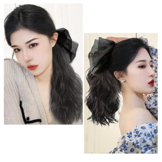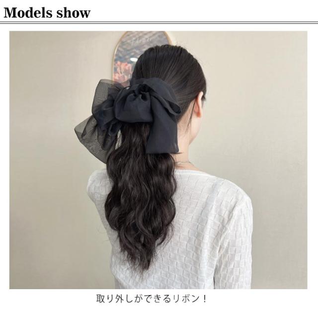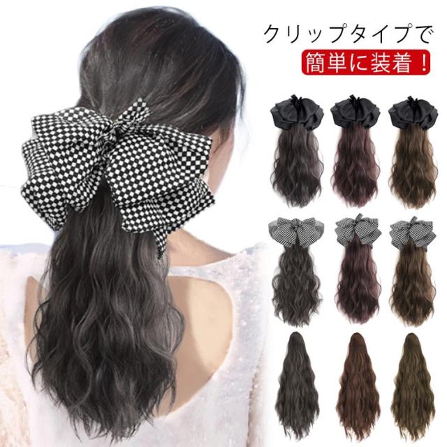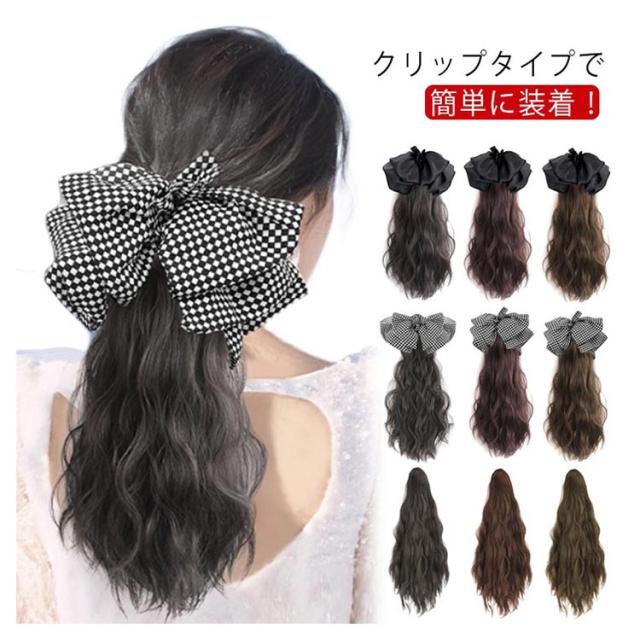 2タイプ選べる! ビッグリボン付き ポニーテール ウィッグ 部分ウィッグ 仮装 エクステンション エクステ ワンタッチ ポニーテール エクステンション つけ毛 自然 付け毛 クリップ式 装着簡単 部分 ポイントウィッグ 送料無料
