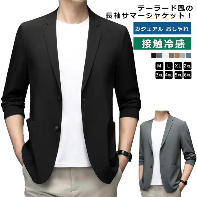 テーラードジャケット メンズ サマージャケット 接触冷感 春夏 おしゃれ 送料無 長袖 薄手 大きいサイズ 涼しい シンプル カジュアル おしゃれ 紫外線対策 シンプル