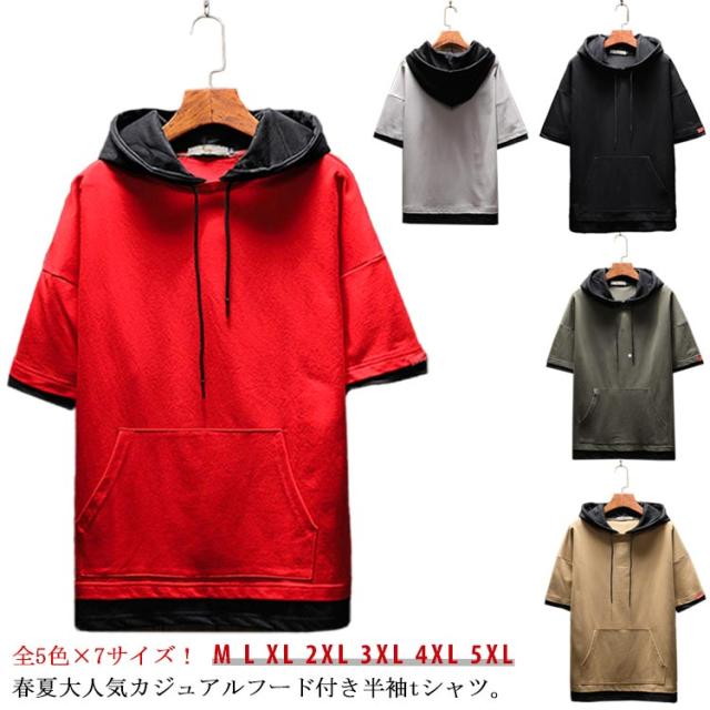 tシャツ メンズ フード付 半袖パーカー 送料無料 半袖 メンズ パーカー スウェット トレーナー 無地 メンズ 半袖tシャツ 大きいサイズ メンズ Tシャツ おしゃれ トップス キレイめ カジュアル 夏 通学 カジュアル カットソー スポーツウェア ゆったり 20代30代40代
