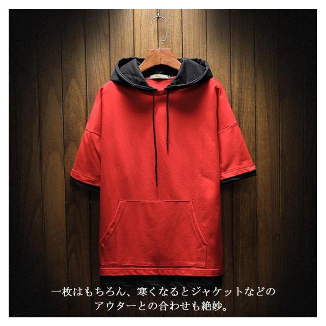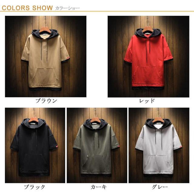| 全5色×7サイズ!春夏大人気カジュアルフード付き半袖tシャツ。 薄くすぎず、厚くすぎず、程度良い厚さもある綿素材を使用し、よい着心地です。 一枚はもちろん、寒くなるとジャケットなどのアウターとの合わせも絶妙。 シンプルdesignでボトムスも選ばず、どんなitemとも好相性◎ ストリート系にもファッション系にもカジュアル系にも使える万能itemです。 | |
