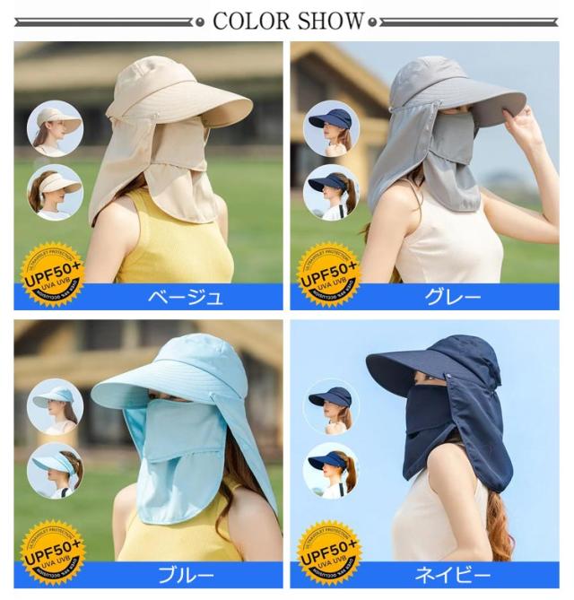 | 【取り外し可能日よけ布付き】【取り外し可能フェイスカバー付き】 日差しの強い日のアウトドアで過ごす楽しい時間を快適にサポートするハット。 日焼けしやすい襟足部分もしっかりガードする。首の後ろの日焼けを予防する日よけ布もついていて安心♪ 後ろの日よけ布、フェイスカバー、頭上の部分、すべて取り外し可能で、折りたたみ収納できます。 ご家庭で簡単に洗えるので、汗をかく暑い夏でも大活躍間違いなし! 紫外線から守るUVカットアイテムです。 | |