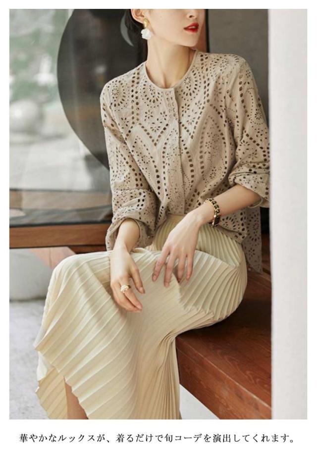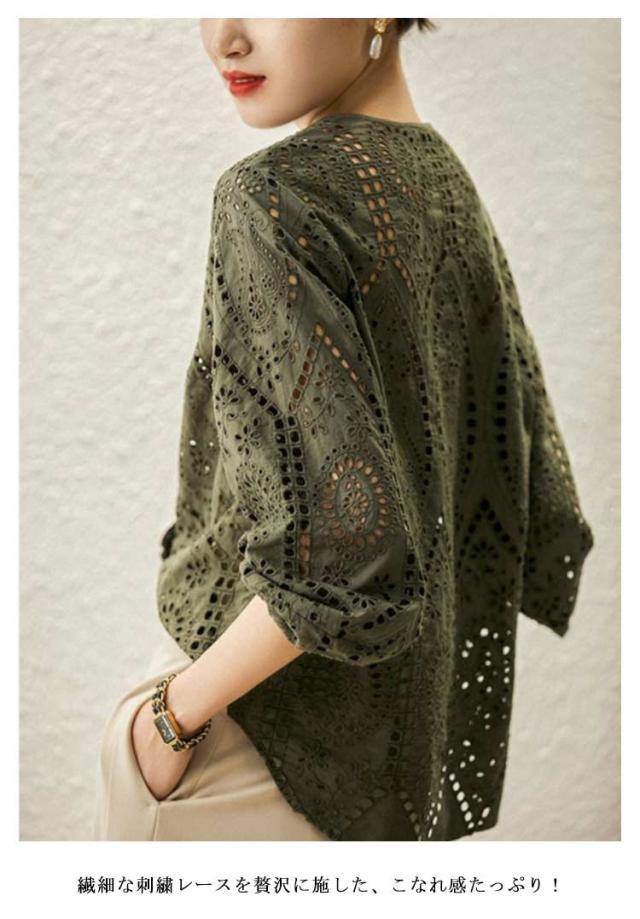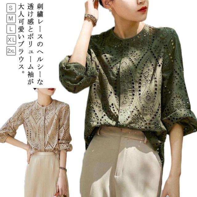 スカラップレースブラウス シャツ ブラウス レディース 刺繍 総レース シャツ カーディガン マルチway 羽織り シアーシャツ ボリュームスリーブ シースルー シアー 薄手 きれいめ ゆったり 夏 可愛い 大人 カジュアル 送料無料