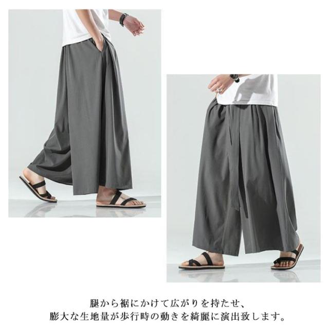 袴パンツ ワイドパンツ メンズ フレアパンツ ロング丈 ガウチョ スカートパンツ スカート風 ロングパンツ ワイド 薄手 春 夏 はかまパンツ 冷感 とろみ 落ち感 サルエルパンツ レディース 大きいサイズ 黒 ブラック グレー 【送料無料】