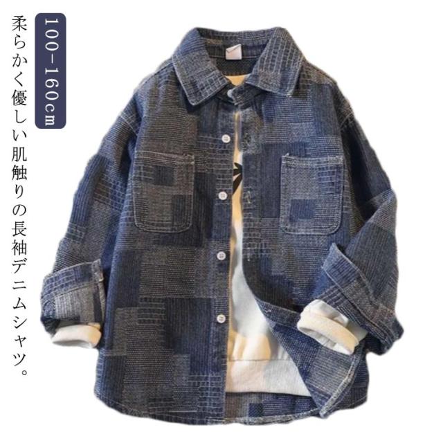 デニムシャツ 男の子 チェック 子供服 カジュアルシャツ キッズ トップス 羽織り アウター 送料無料 ジュニア 長袖 通学 通園 お洒落 春物 秋物 韓国風 春 秋 デニム トップス デニム ジージャン ジュニア 小学生 キッズ服 ゆったり 無地 通学 カジュアルシャツ
