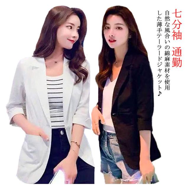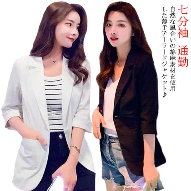 サマージャケット リネンジャケット レディース サマースーツ 七分袖 大きいサイズ ショート丈 テーラードジャケット 綿混 綿麻混 アウター コットンリネン ジャケット 無地 フェミニン エレガント マニッシュ 大人 送料無料