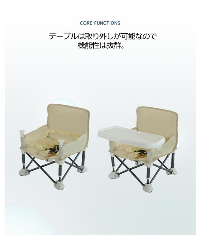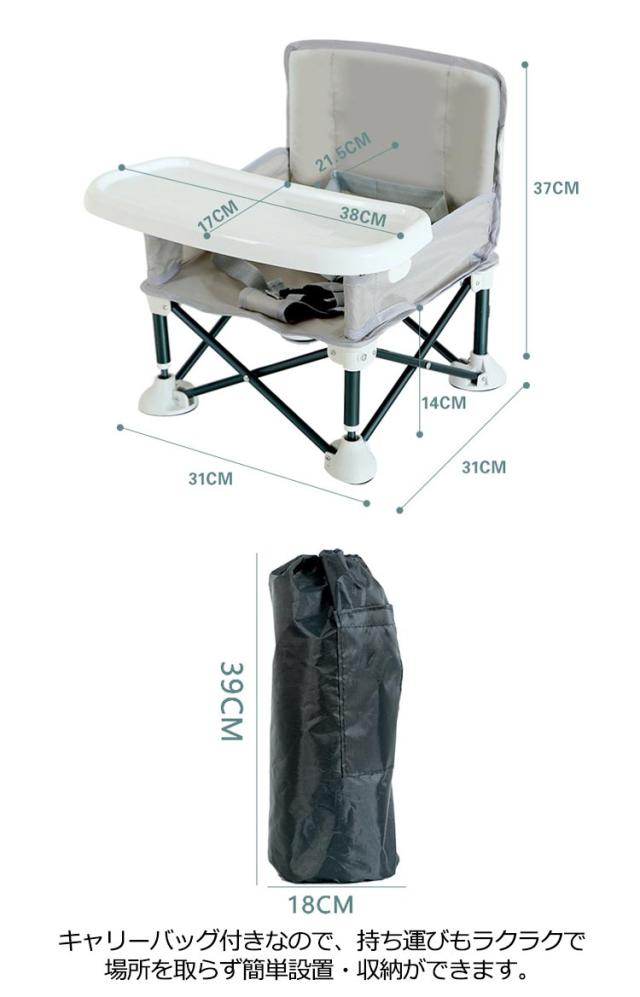 | お家での使用はもちろん、外でも使える子供用折りたたみローチェア。 お食事、おやつ、遊び用のベビーチェアとして。 赤ちゃんを固定できるベルト付。食事中の立ち上がり防止に。 使わないときは折りたたんでコンパクトに収納できます。 キャリーバッグ付きなので、持ち運びもラクラクで場所を取らず簡単設置・収納ができます。 テーブルは取り外しが可能なので機能性は抜群。 | |