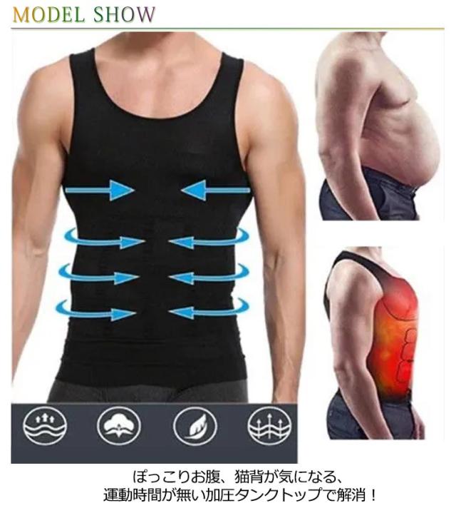 | お腹まわり、胸部、背中を重点的に加圧できるように設計された加圧インナー。 ぽっこりお腹、猫背が気になる、運動時間が無い加圧タンクトップで解消! ウエストを引き締め、正しい姿勢へ導きスリムなボディラインを作り出す! 優れた伸縮性、普段着のインナー、トレーニング用のスポーツインナーとして着用がおすすめ! | |