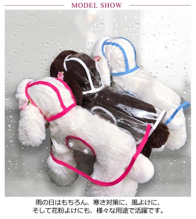 | 雨の日の散歩も楽しくなる♪お顔もよく見えるクリア素材♪かわいいペット用レインコート♪ 着用簡単♪胸とお腹にスナップボタンがついた着せやすいペットレインコートです。 雨の日や雨上がりのお散歩に欠かせないアイテム♪ 簡単に装着できる、軽くて、折り畳んで収納できます。 雨の日はもちろん、寒さ対策に、風よけに、そして花粉よけにも、様々な用途で活躍です。 | |