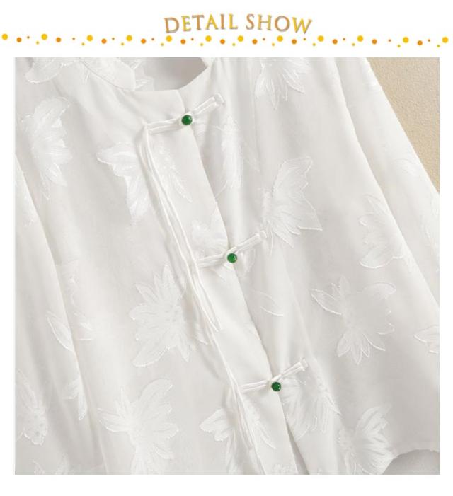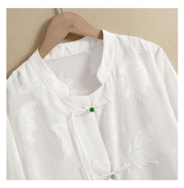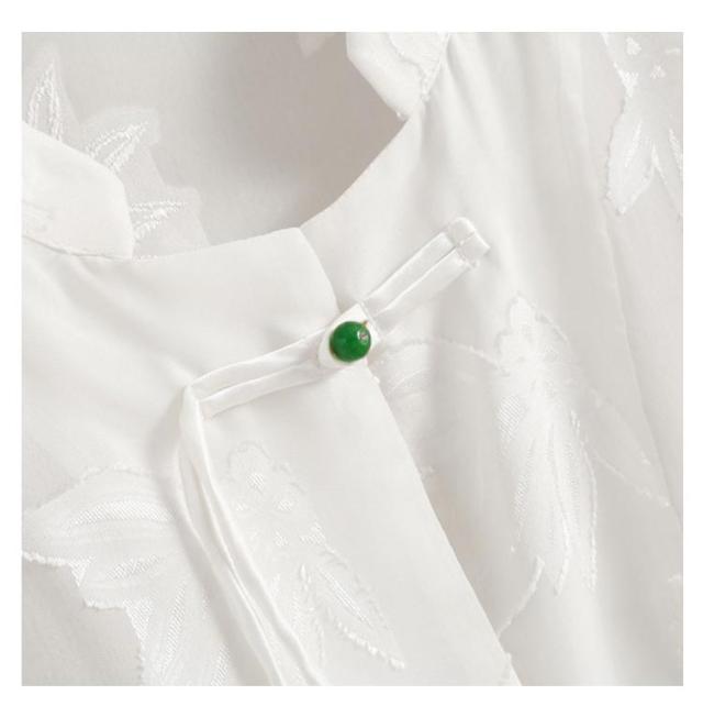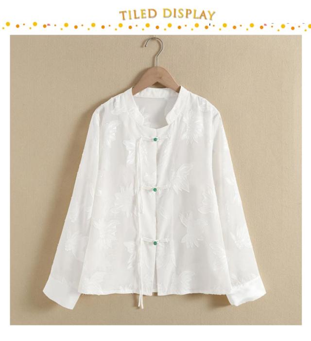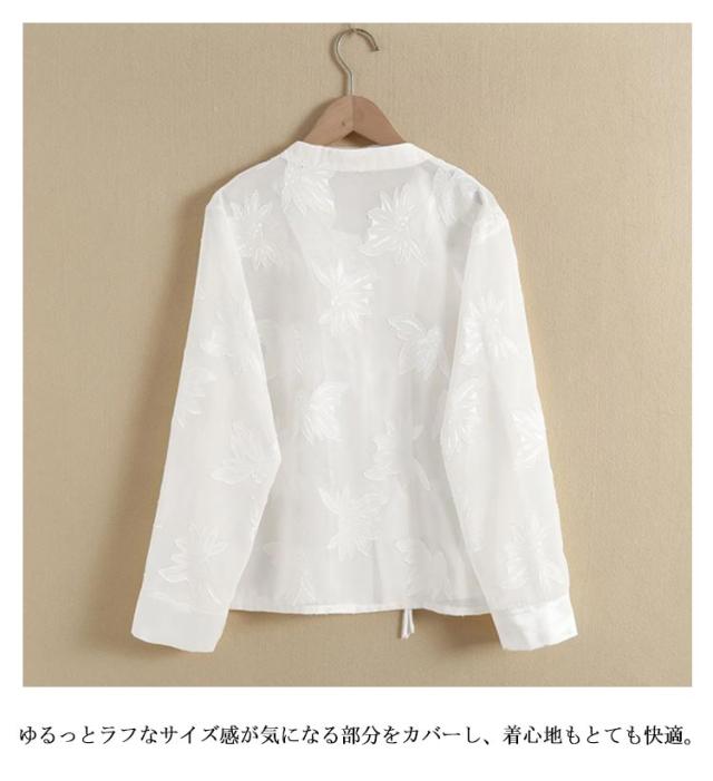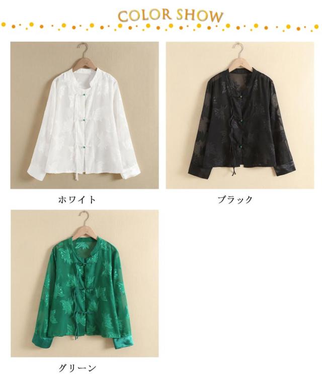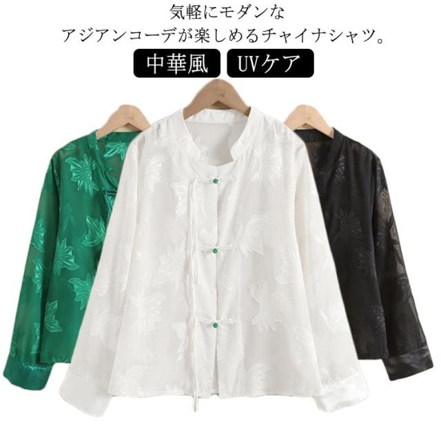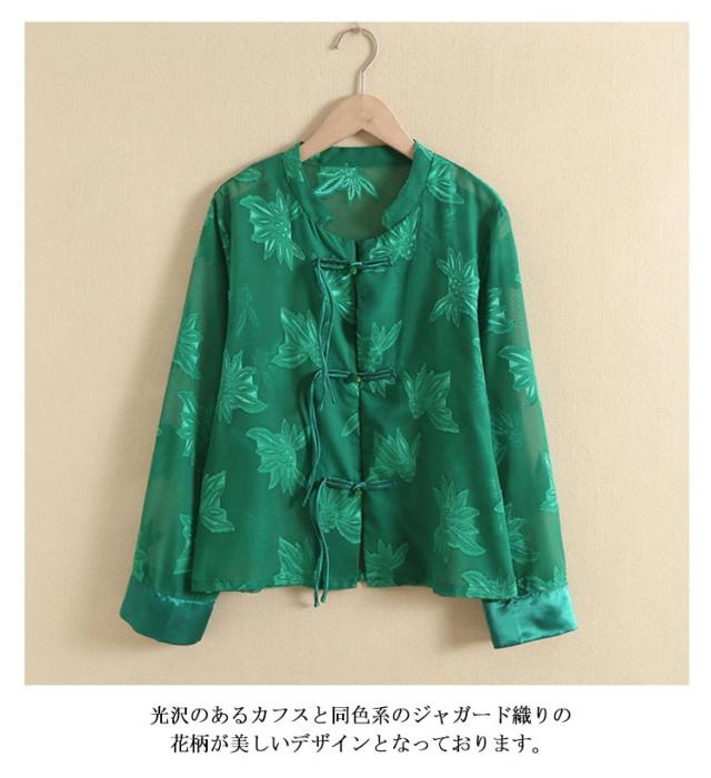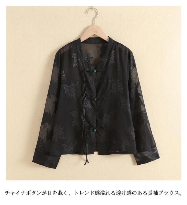 チャイナシャツ 透け感 シアーブラウス 長袖 羽織り トップス レディース チャイナボタン 漢服 ジャガード織り 立ち襟 シフォン カジュアルシャツ 着痩せ 送料無料 おしゃれ ストリート系 春夏 冷房対策 UVケア 薄手