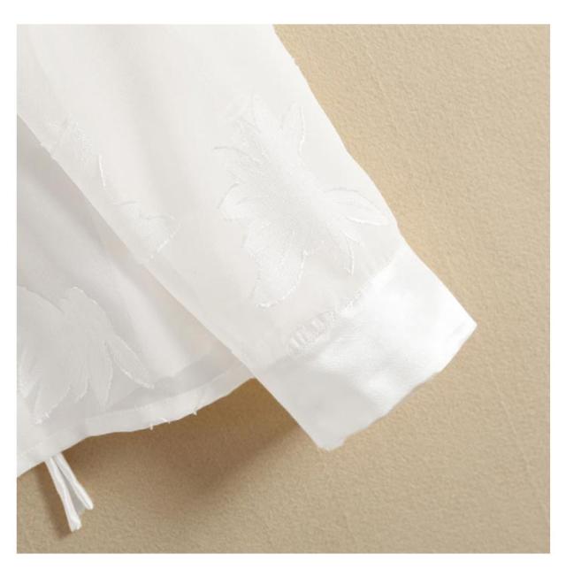 | 気軽にモダンなアジアンコーデが楽しめるチャイナシャツ。 チャイナボタンが目を惹く、トレンド感溢れる透け感のある長袖ブラウス。 ゆるっとラフなサイズ感が気になる部分をカバーし、着心地もとても快適。 光沢のあるカフスと同色系のジャガード織りの花柄が美しいデザインとなっております。 | |
