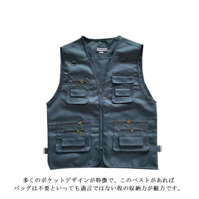 | 多機能カジュアルメンズベスト! シンプルなデザインで、丈夫と機能性に両立でき、またかっこ良さもいい、夏にはポロシャツの上に着るのは最適。 オールシーズンタイプなので、どんな季節の登山、旅行、ハイキングやお釣りなどのアウトドアスポーツに重宝なベスト。 多くのポケットデザインが特徴で、このベストがあればバッグは不要といっても過言ではない程の収納力が魅力です。 ベストの内側にも嬉しいポケット付き、細かいものの持ち運びにも適しています。 | |