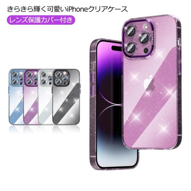 送料無料 キラキラ iPhone14ケース 14ProMax 13mini 12pro ケース クリア 13Pro 12Pro Max スマホカバー レンズ保護カバー付き 透明 軽量 スリム 落下防止 かわいい 韓国 女子