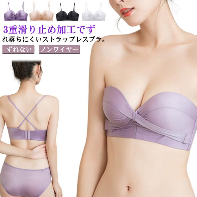 ストラップレスブラ 落ちない 3重滑り止め レディース 谷間 ブライダルインナー バストアップ フロントホック 脇高 ストラップレス ブラ チューブトップ ずれない ノンワイヤー 盛れる ブラジャー ベアトップ 肩紐なし オフショルダー インナー ドレスインナー