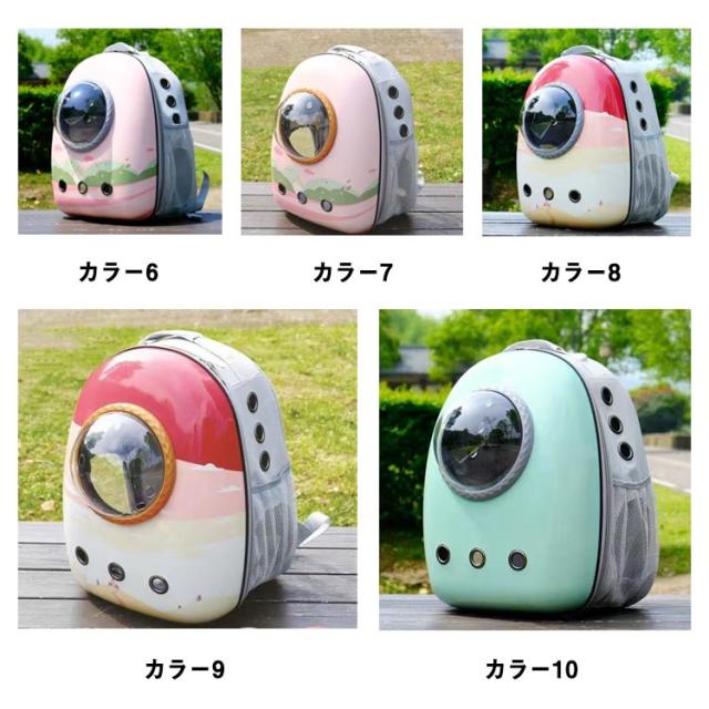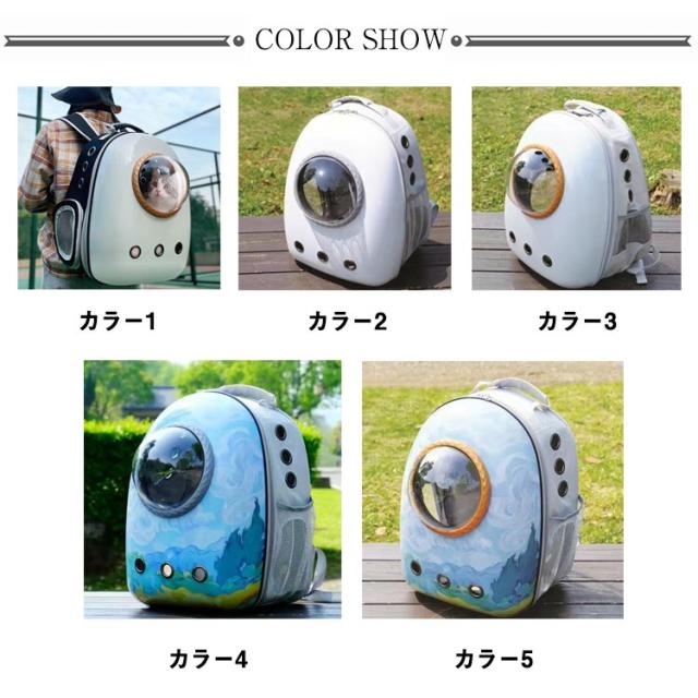 | シンプルでおしゃれなペットキャリーリュック 外の景色が見えるため、ペットへのストレスも軽減 正面の透明なドーム窓から宇宙船に乗っているみたいにバックを開けずにいつでもペットの顔が見れるので 遠出のお出かけやトリミング、病院の通院、旅行はもちろん、車でドライブ時にはペットキャリーケースとしても、 避難時のペット用の防災グッズ・災害グッズとしてもおすすめなペットバッグ。 | |