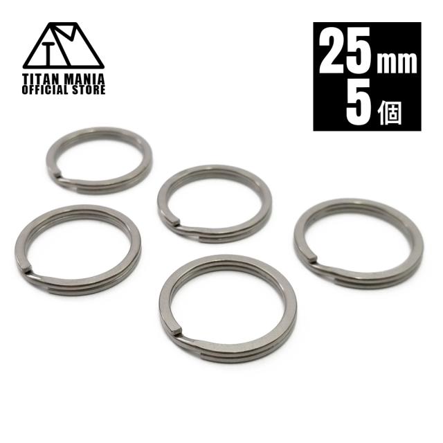 TITAN MANIA チタンマニア 二重リング キーリング チタン製 25mm×5個 超軽量 頑丈 サビに強い 二重丸カン スプリットリング