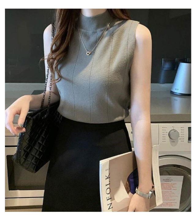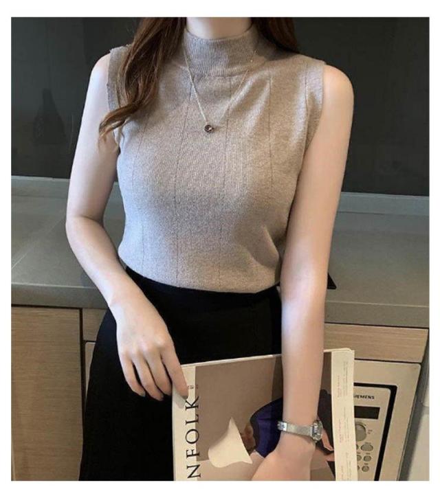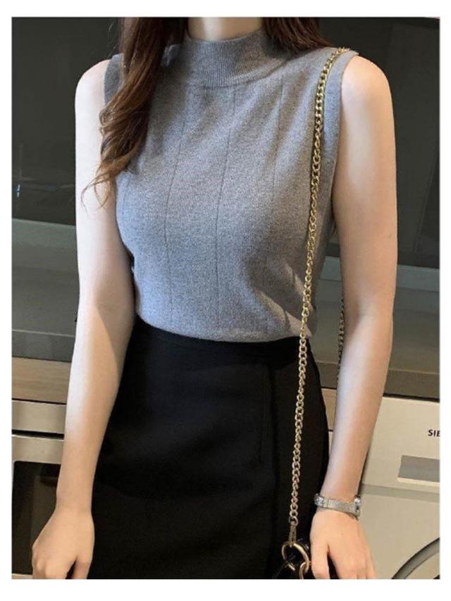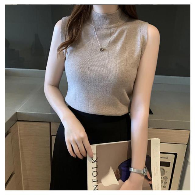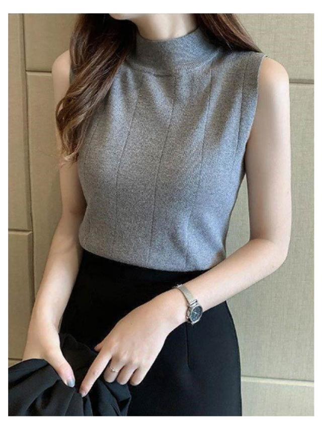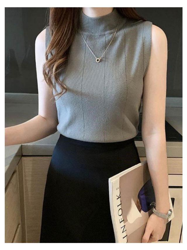 サマーニット ノースリーブ レディース トップス リブニット 袖なし 薄手 夏 送料無料 細見え モックネック ハイネック 無地 カットソー タンクトップ 重ね着 キャミソール リブ編み 仕事着 通勤 オフィス