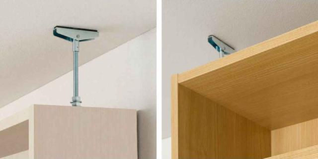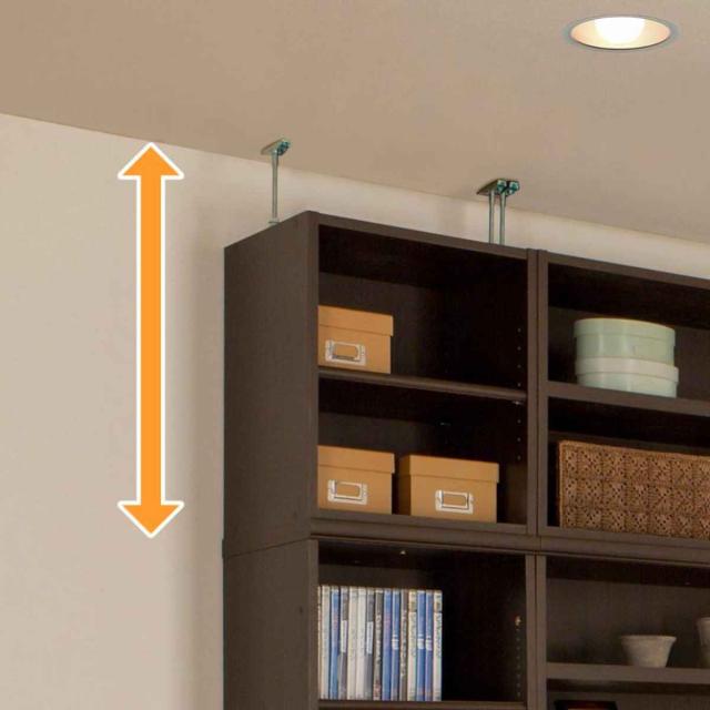 本体高さ178cm、211.1cmの本体に取り付けられる上置き棚です。しっかり突っ張って転倒防止するとともに、天井付近のスペースを収納として活用できます。