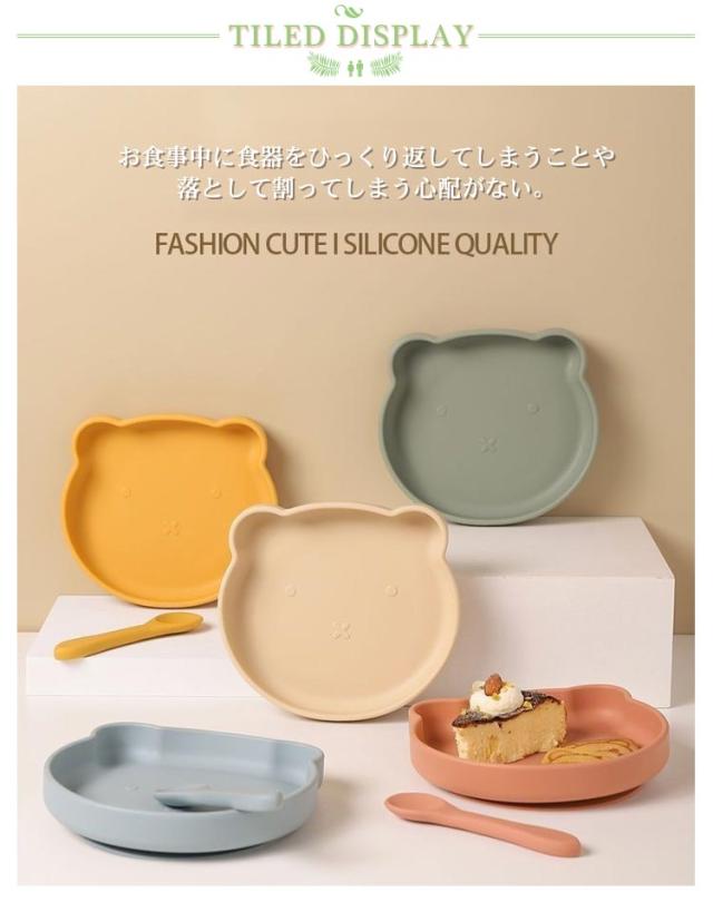 シリコンプレート ランチ皿 離乳食 つかみ食べ プレート ベビー食器 子供用食器 お食い初め すくいやすい スプーン付き 食器セット ベビー用 赤ちゃん用 やわらか素材 かわいい カラバリ おしゃれ 送料無料
