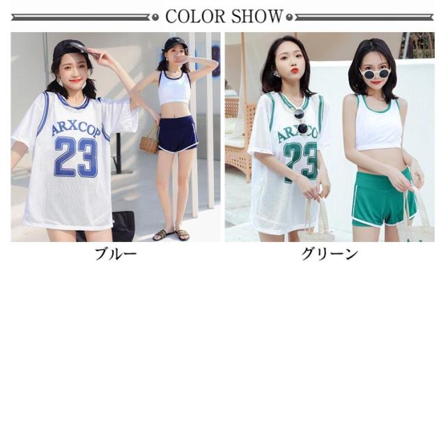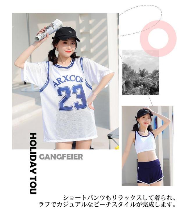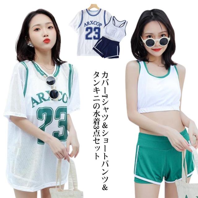 タンキニ 水着 3点セット レディース 体型カバー ショートパンツ ビキニ 半袖 tシャツ オーバーサイズ ラッシュガード カップ付き 二の腕カバー 露出控えめ 大きいサイズ 女性 女子 高校生 学生 20代 30代 40代 海 プール ビーチ 水遊び 【送無】