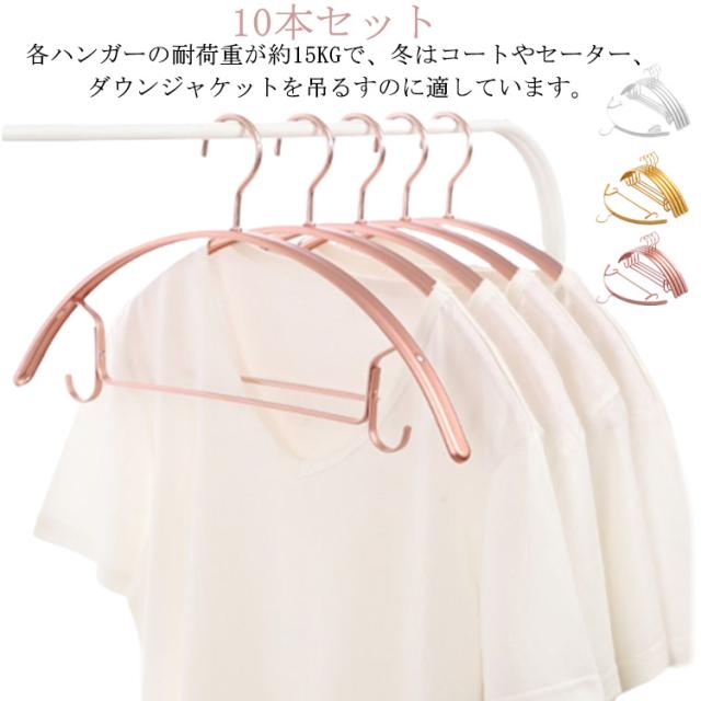すべらないハンガー ハンガー すべらない 収納 アーチハンガー おしゃれ ゴールド ピンク ローズ 10本セット 滑らない 肩 持ち運び 滑り止め 型崩れしない 跡がつかない 洗濯ハンガー 衣類ハンガー 変形にくい 物干しハンガー 金属 曲がらない PVC