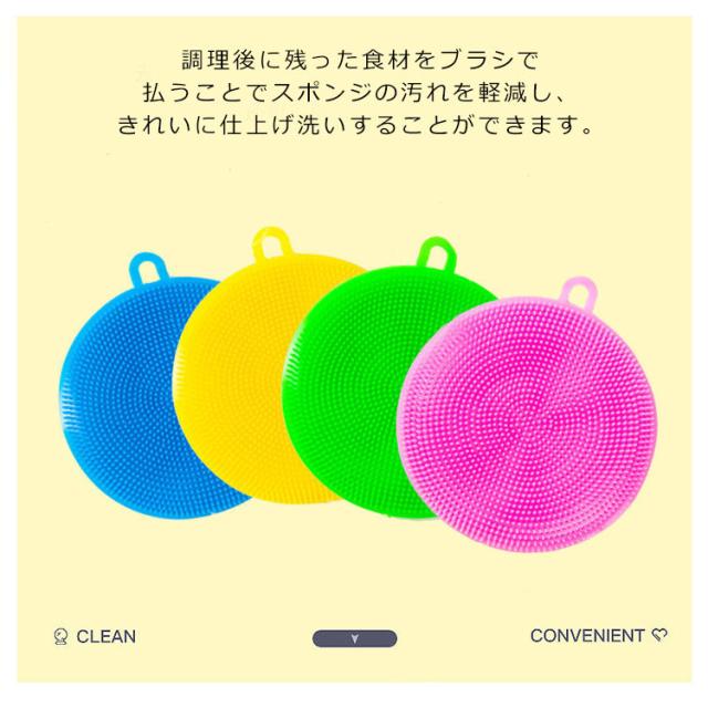 | 少ない洗剤でも細かいブラシで汚れが落ちやすいシリコン製のスポンジ。 調理後に残った食材をブラシで払うことでスポンジの汚れを軽減し、きれいに仕上げ洗いすることができます。 耐熱性が高く、調理後のフライパンの汚れも落とせます。 予洗いすることで、キッチンスポンジのベタつきを防ぎ、きれいに仕上げ洗いできます。 食器洗いはもちろん、シンクなどあらゆる場所で使用可能! お得な6枚入りなので用途に合わせて色分けできます。 | |