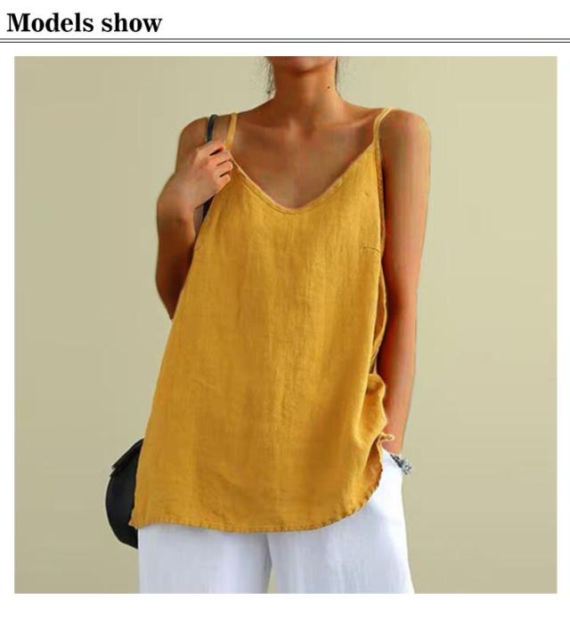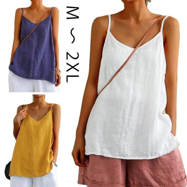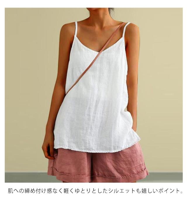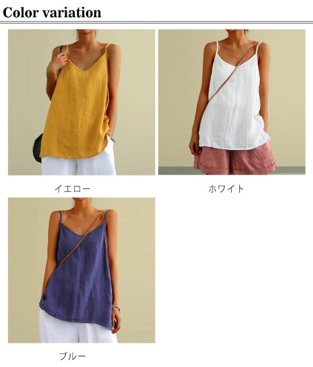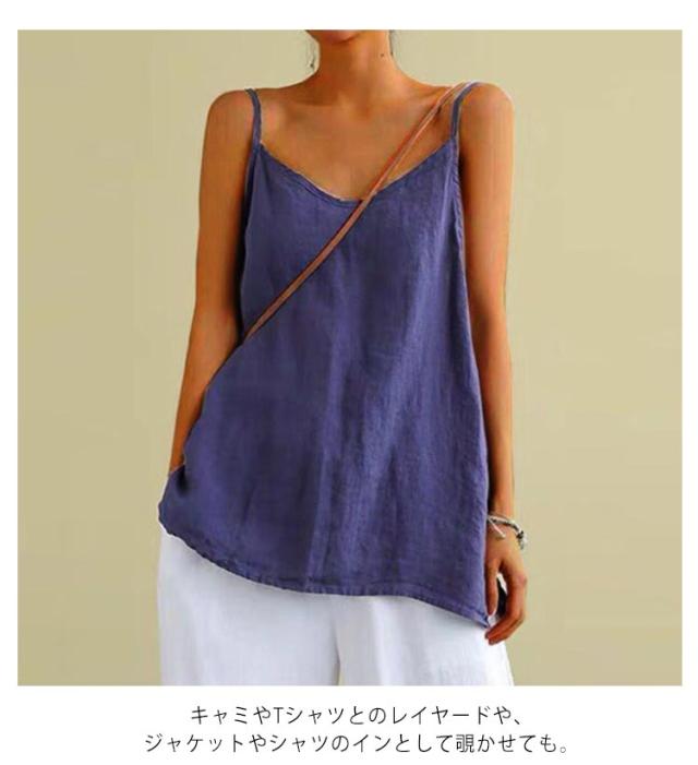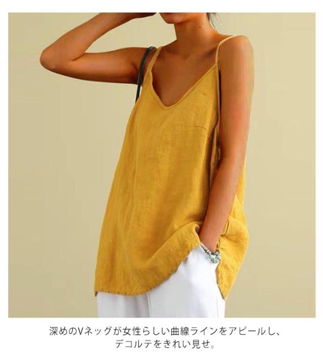 キャミソール レディース トップス 綿麻 キャミ Vネック 重ね着 レイヤード インナー タンクトップ ノースリーブ 大人 ゆったり ゆとり コットン 春夏 送料無料 ホワイト イエロー ブルー